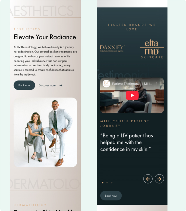LIV felt their website was outdated and wanted something that not only reflected their brand and their tone of voice but also enabled them to showcase all of the aesthetic and dermatology treatments they offer in a clear, concise in a user-friendly way that would showcase their services and clinical excellence with easier signposts to book a consultation.